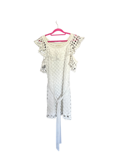 ELEGANT WHITE BOHO LACE RUFFLED TOP MID-THIGH DRESS